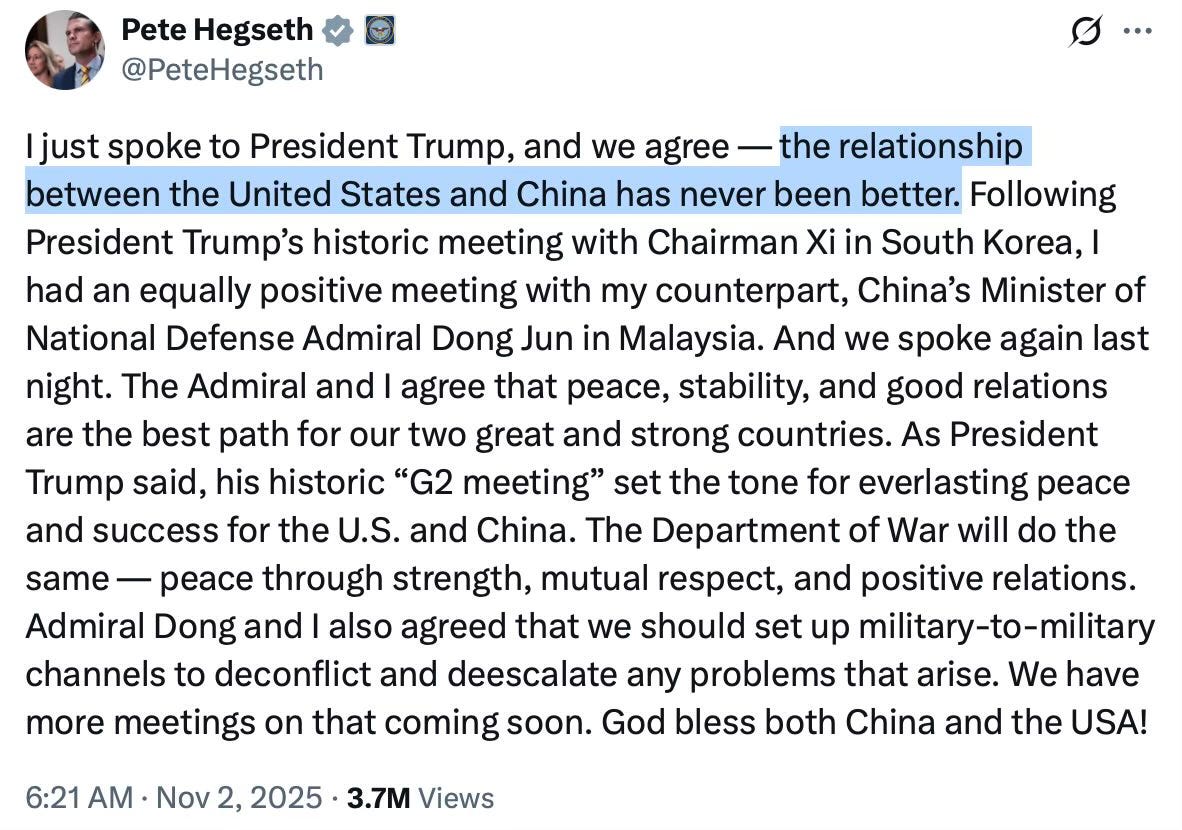 Kinamedia nyhetssida har i samband med dessa möten publicerat två artiklar med de talande rubrikerna “Succé när Donald Trump möter Takaichi Sanae i Japan” och “Flera frågetecken efter att Xi möter Trump i Sydkorea”.