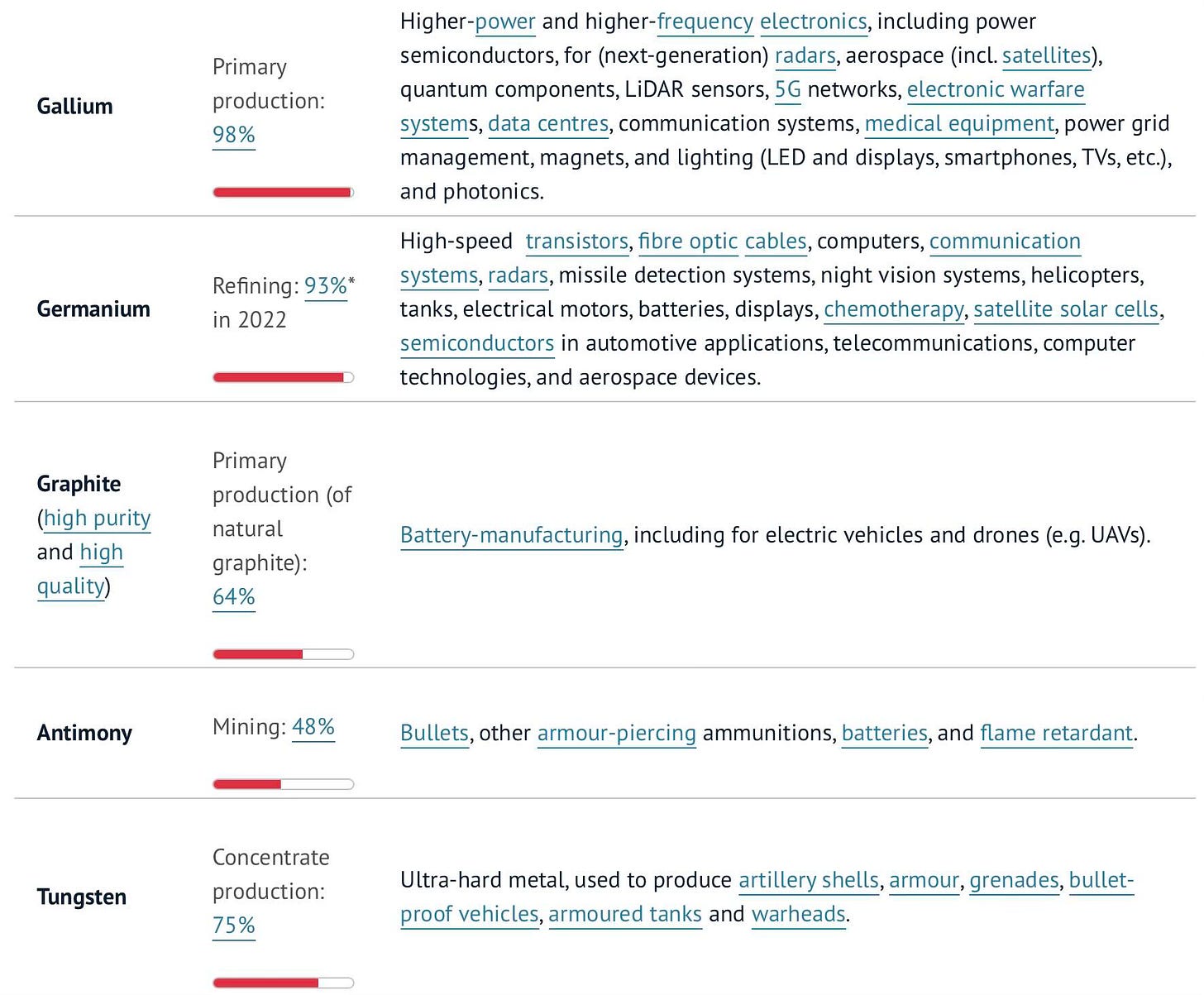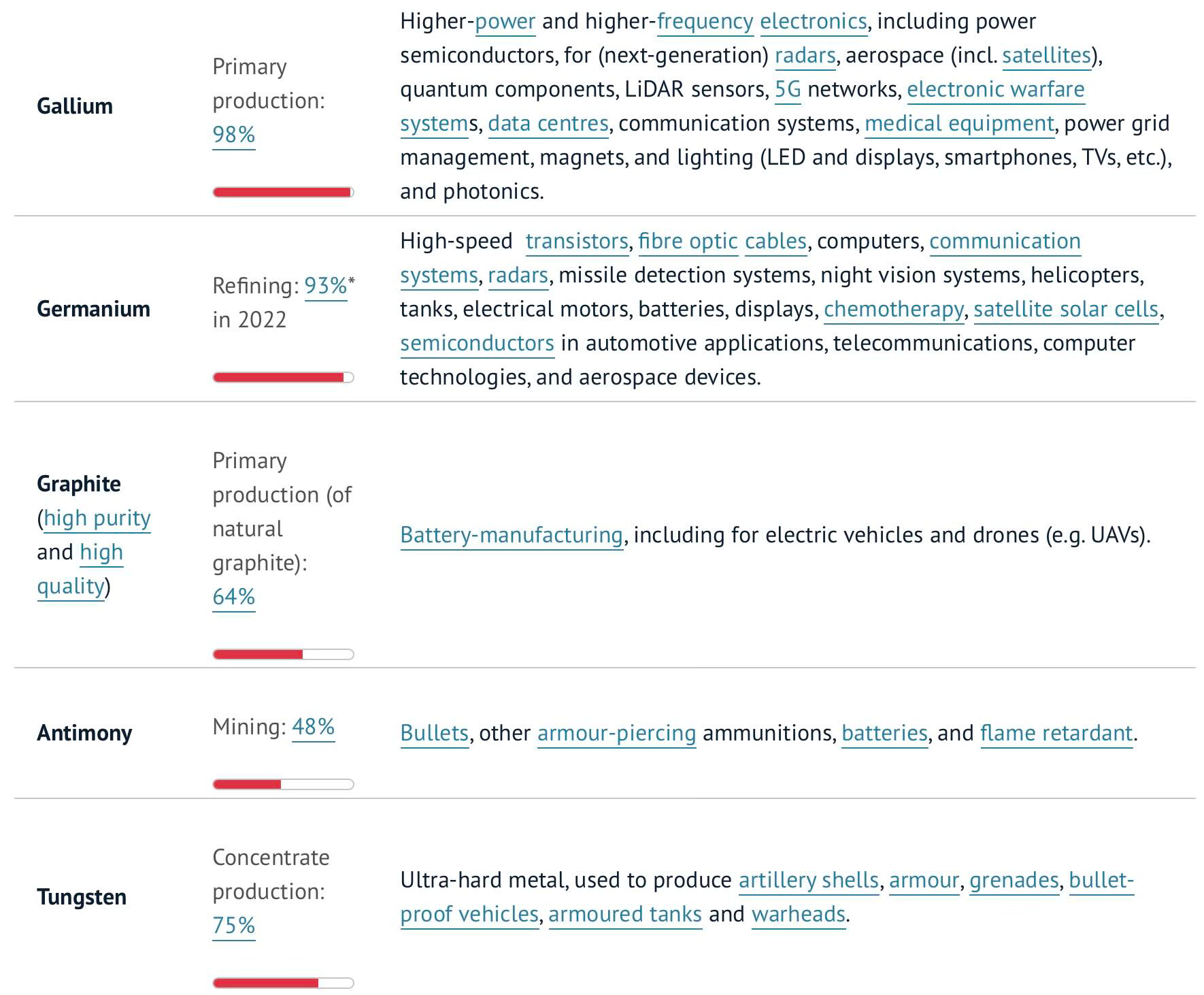 Se nedan information om de fem berörda metallerna från EU Institute for Security Studies: