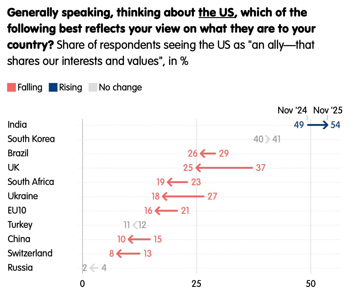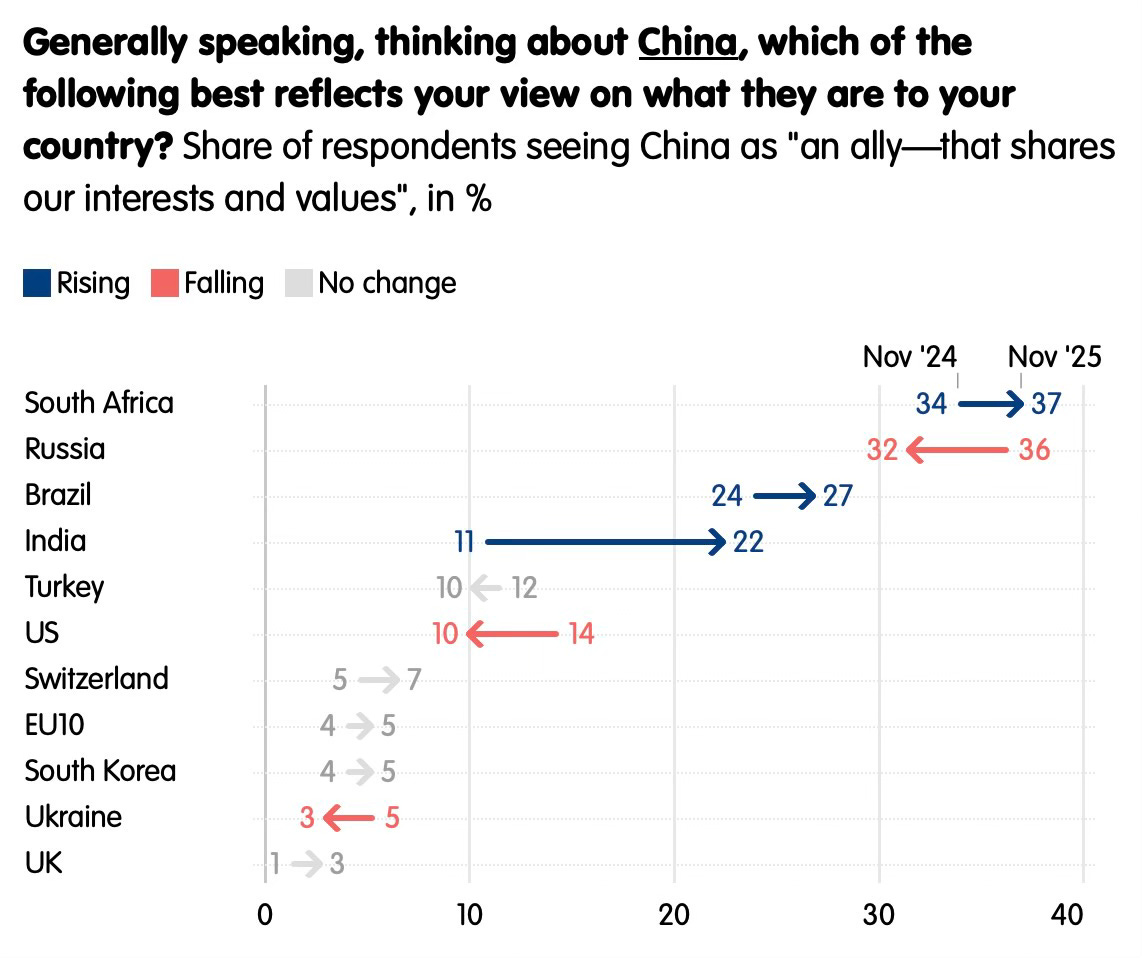 För att bita oss kvar vid turbulensen i världspolitiken, så är det bara konstatera att det inte endast är i Kanada och Storbritannien som USA:s försämrade rykte gynnar Kina.