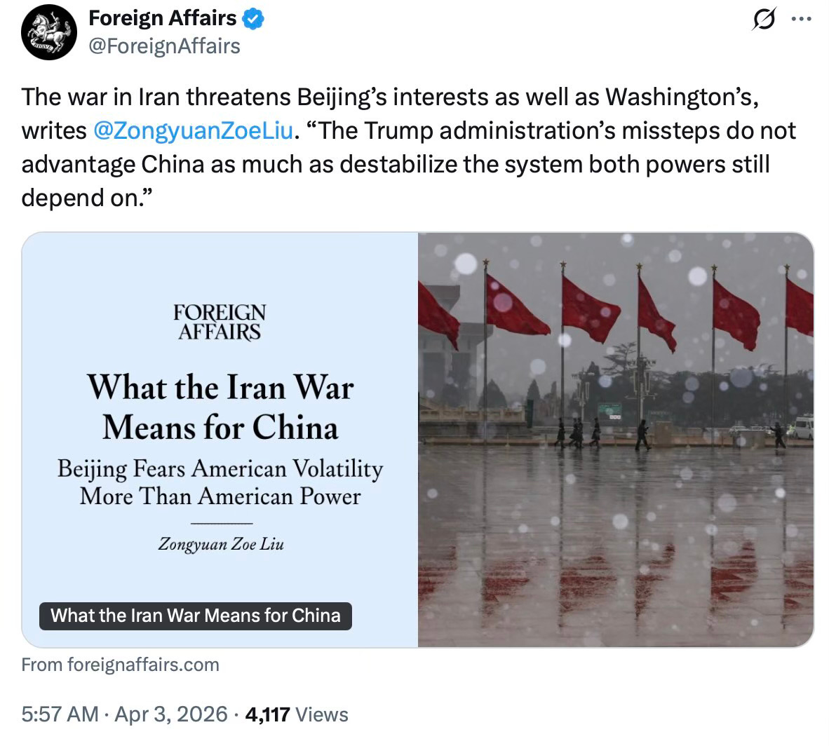 2) “What the Iran War Means for China” (Foreign Affairs)