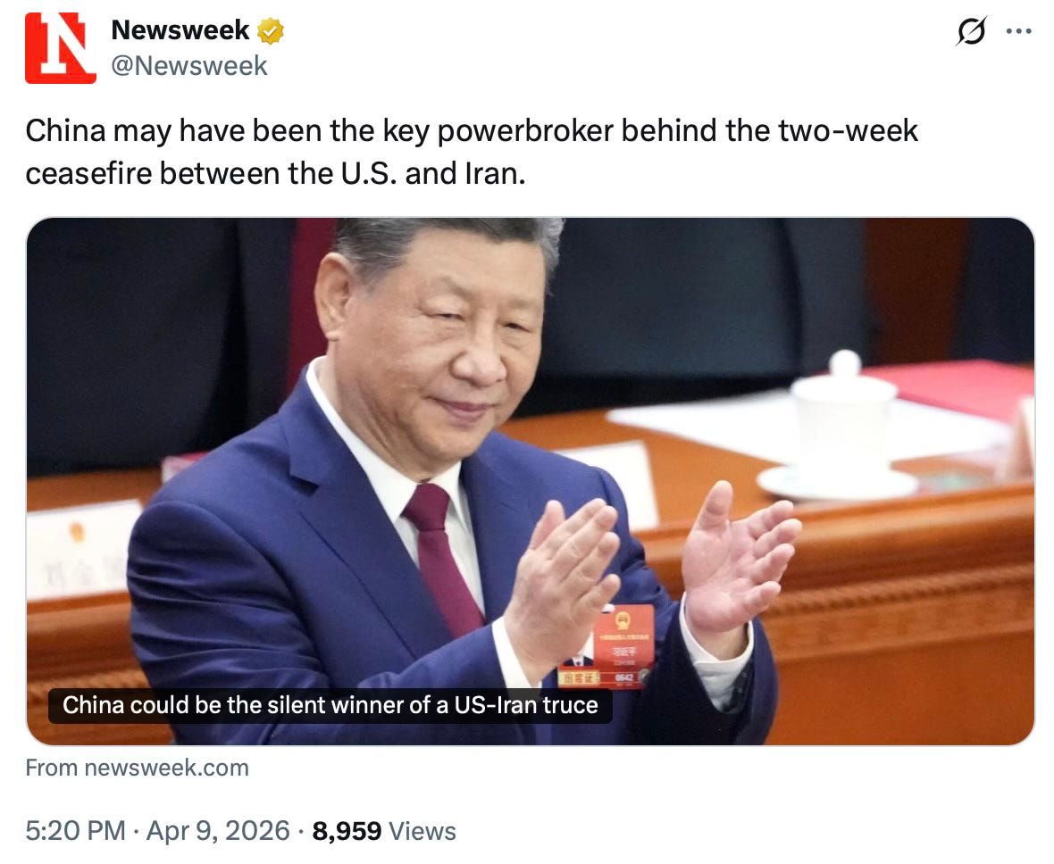 1) “U.S. Intelligence Shows China Taking a More Active Role in Iran War” (New York Times)